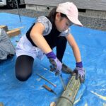 ⽤⽔路をガサガサ。各自、網で水路をさらってみて!ザリガニやどじょう、しじみなどがいるかな?⾝近な⽔の⽣き物を⾃分の⽬で調べてみよう。環境カウンセラーの高橋先生が、身近にいる生き物について教えてくれます。ちょっと早いけど、夏休みの研究課題の前編として使えるかもよ・・・!