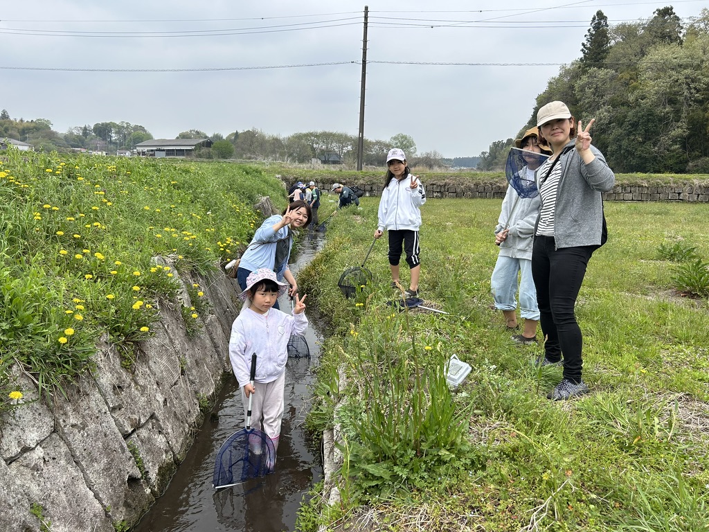 昨年大人気だった、⽤⽔路をガサガサ。今年も農学博士の高橋伸拓先生を隊長に、みんなで水路ガサガサ使用!