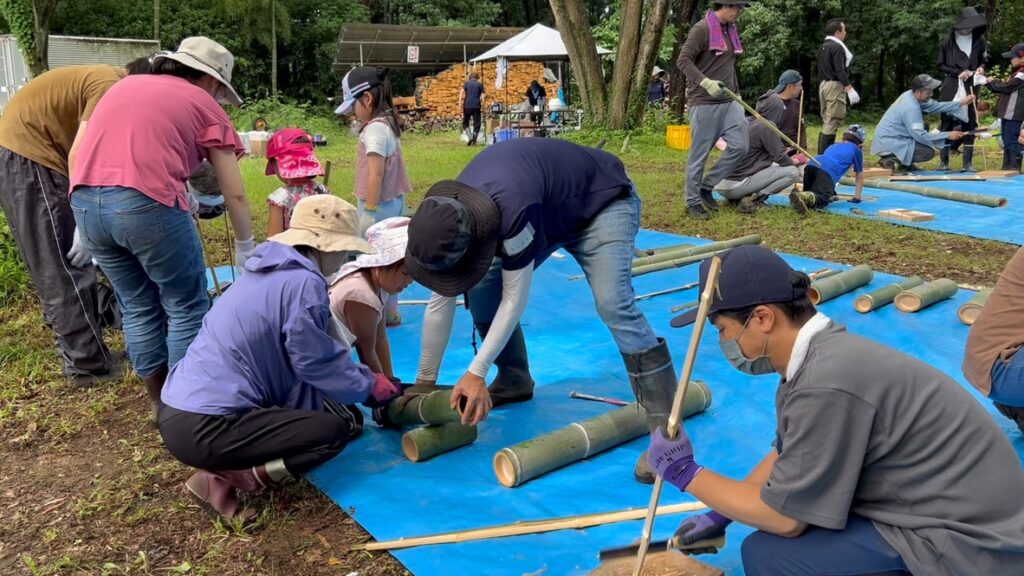 次は、竹を切ってご飯を食べる器と箸と火ふき棒をつくるよ