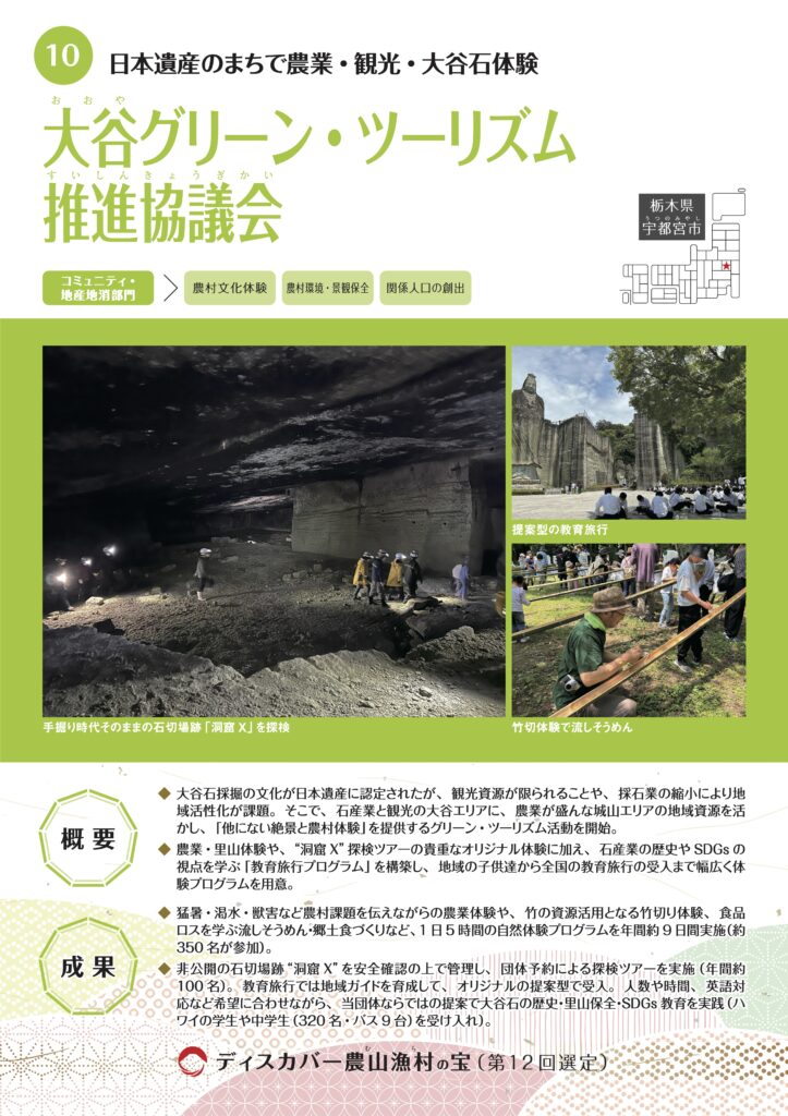 大谷グリーン・ツーリズム推進協議会では、2025年度「第12回 ディスカバー農村漁村(むら)の宝」に、全国454件の応募の中から、30選定の一つに選定されました。12月19日には農林水産省で選定授与式があり、1月20日に首相官邸で交流会が開催されました。